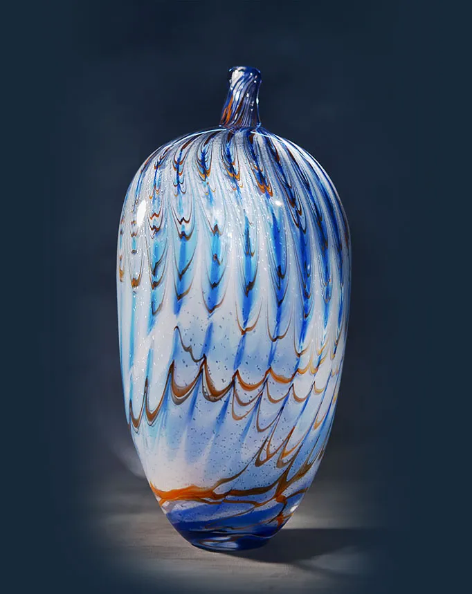 在火、時間與技術交織的玻璃創作中,作品成為其生命的延伸與再生,也成為精神得以永續存在的載體。